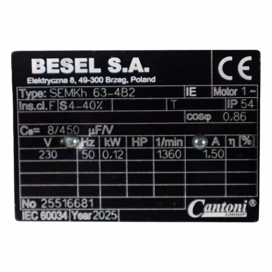 Silnik Besel SEMKh 63-4B2 0,12 kW – Oryginalny Silnik do Pieca z Podajnikiem